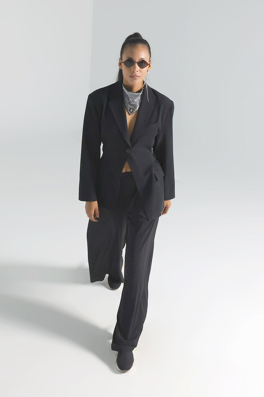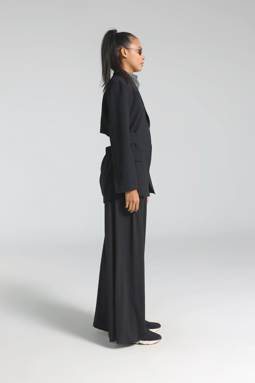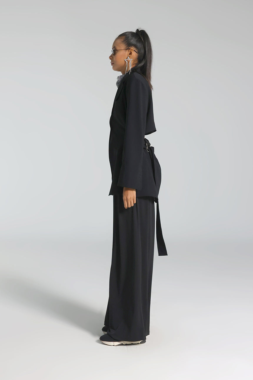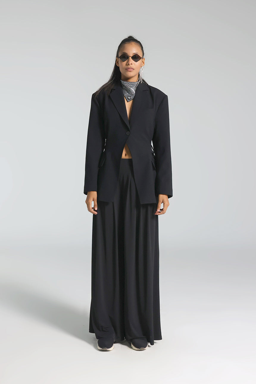 Yatık pile detayı ve rahat kesimiyle öne çıkan bu pantolon, hem şık hem konforlu bir stil sunar.