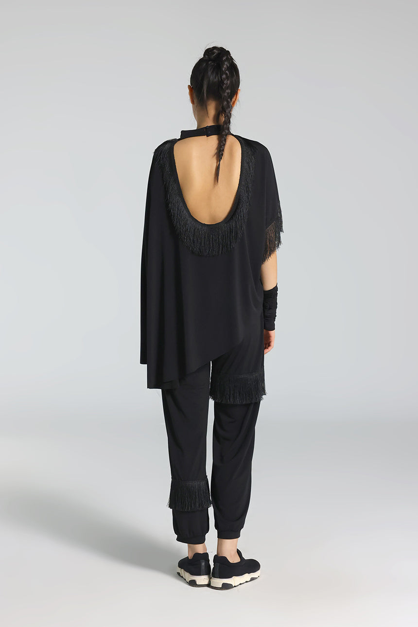 Sırt Dekolteli Püskül Detaylı Asimetrik Bluz