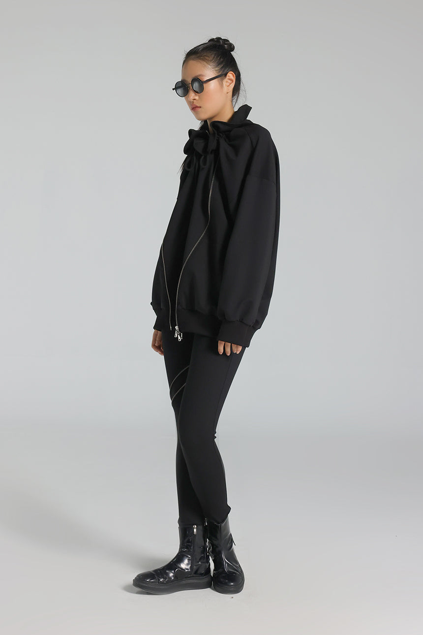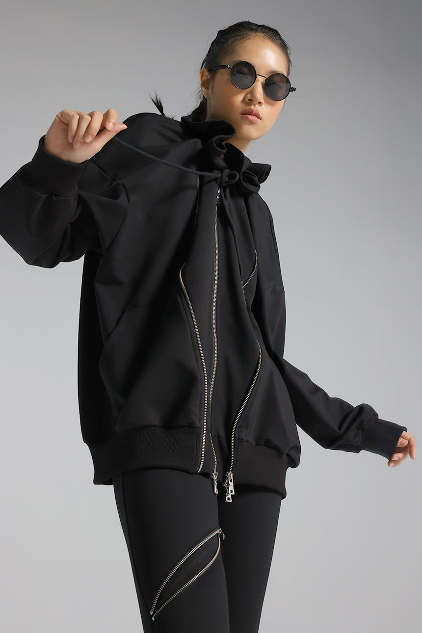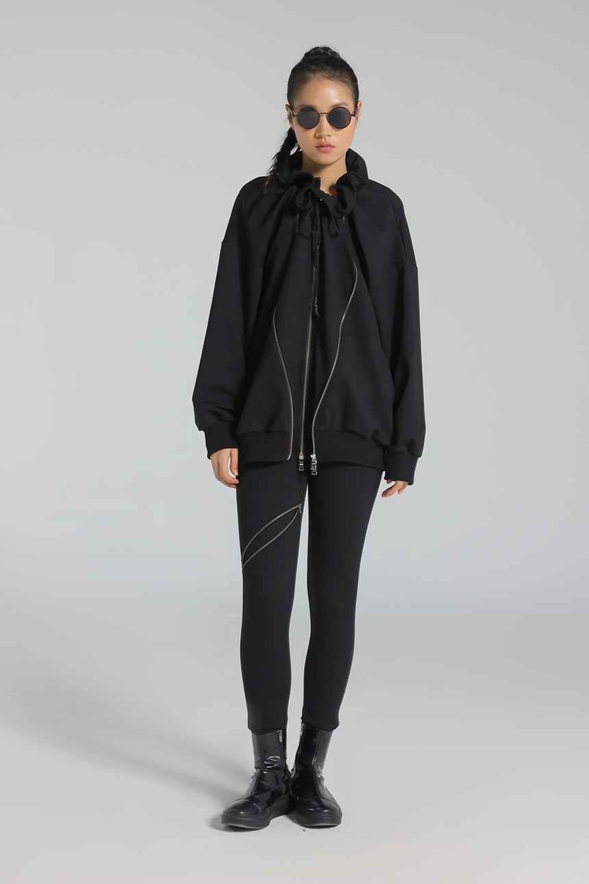Çift Fermuarlı Cepli Ribanalı Sweatshirt