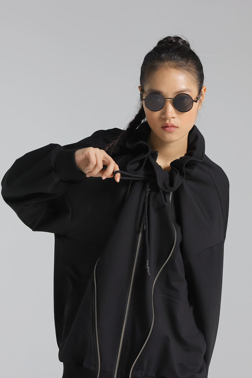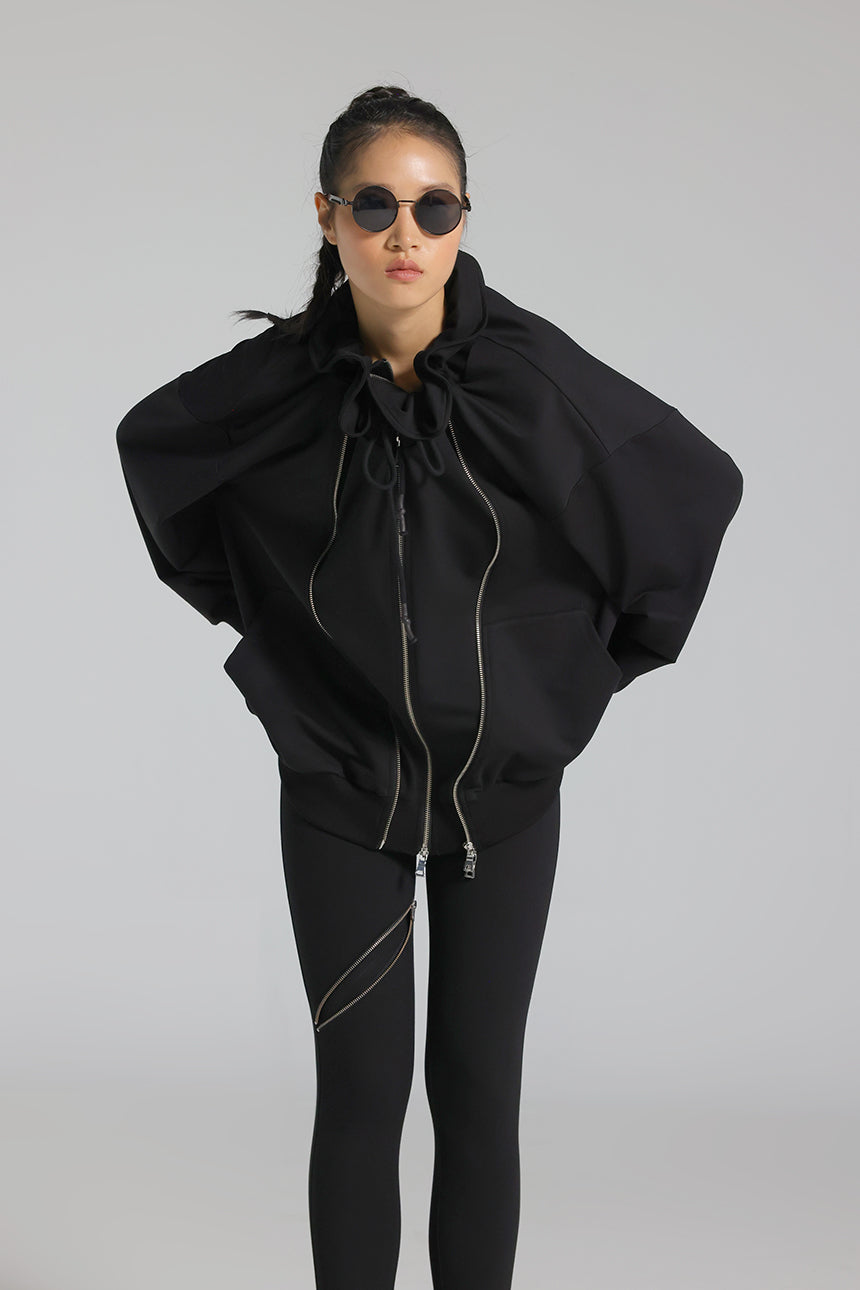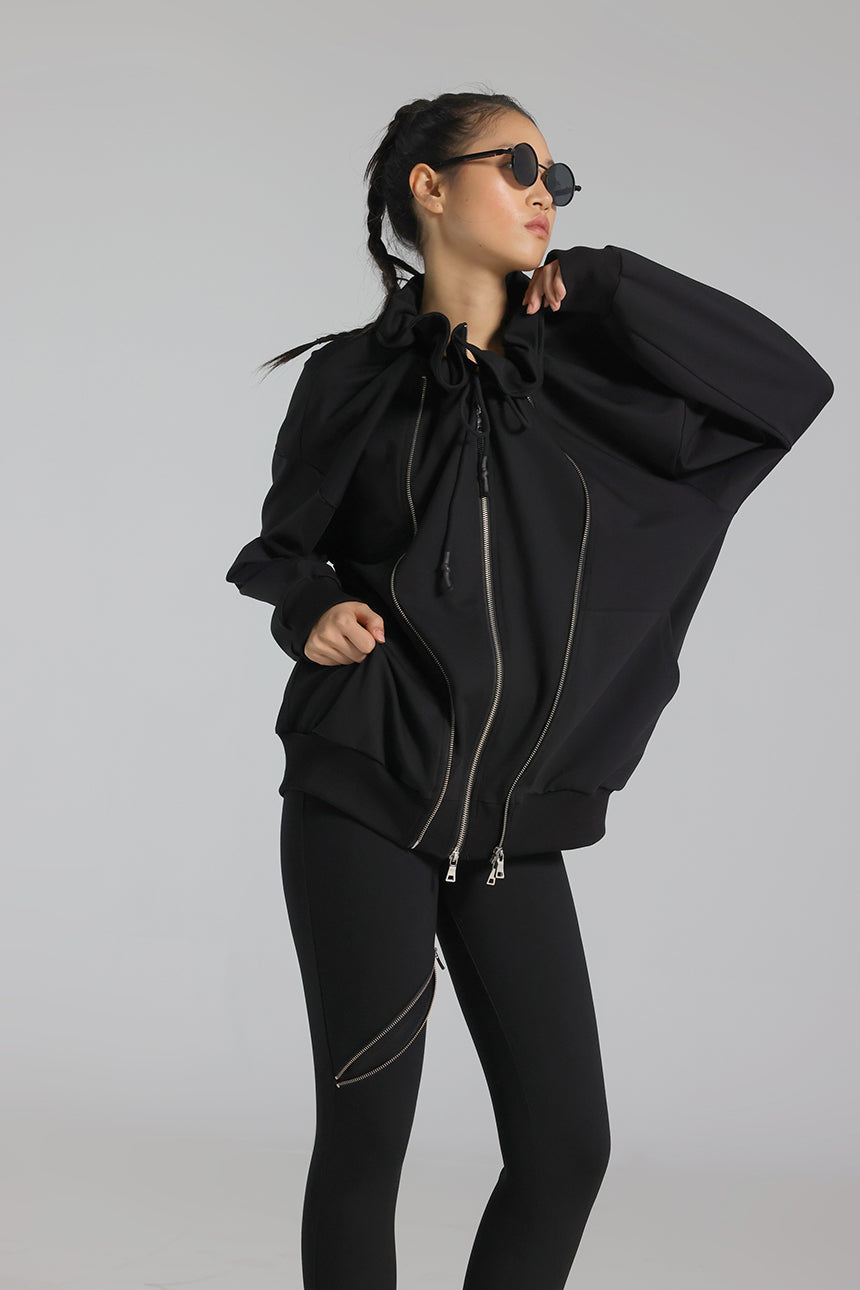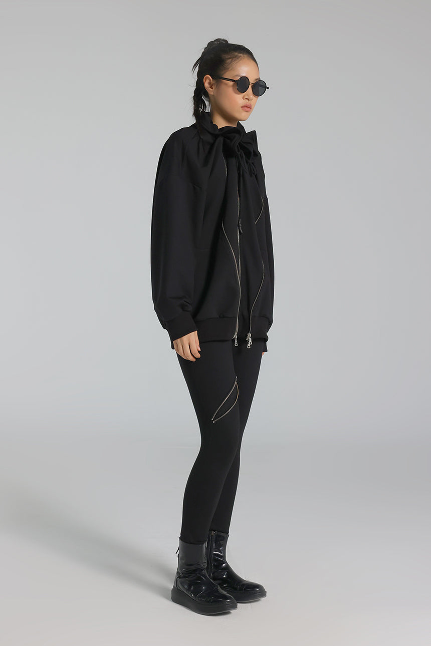 Çift Fermuarlı Cepli Ribanalı Sweatshirt