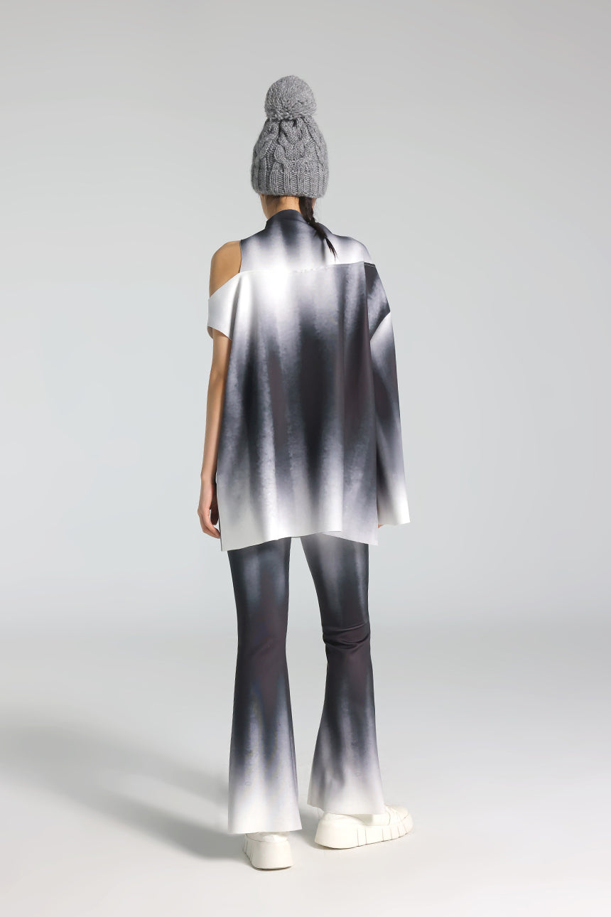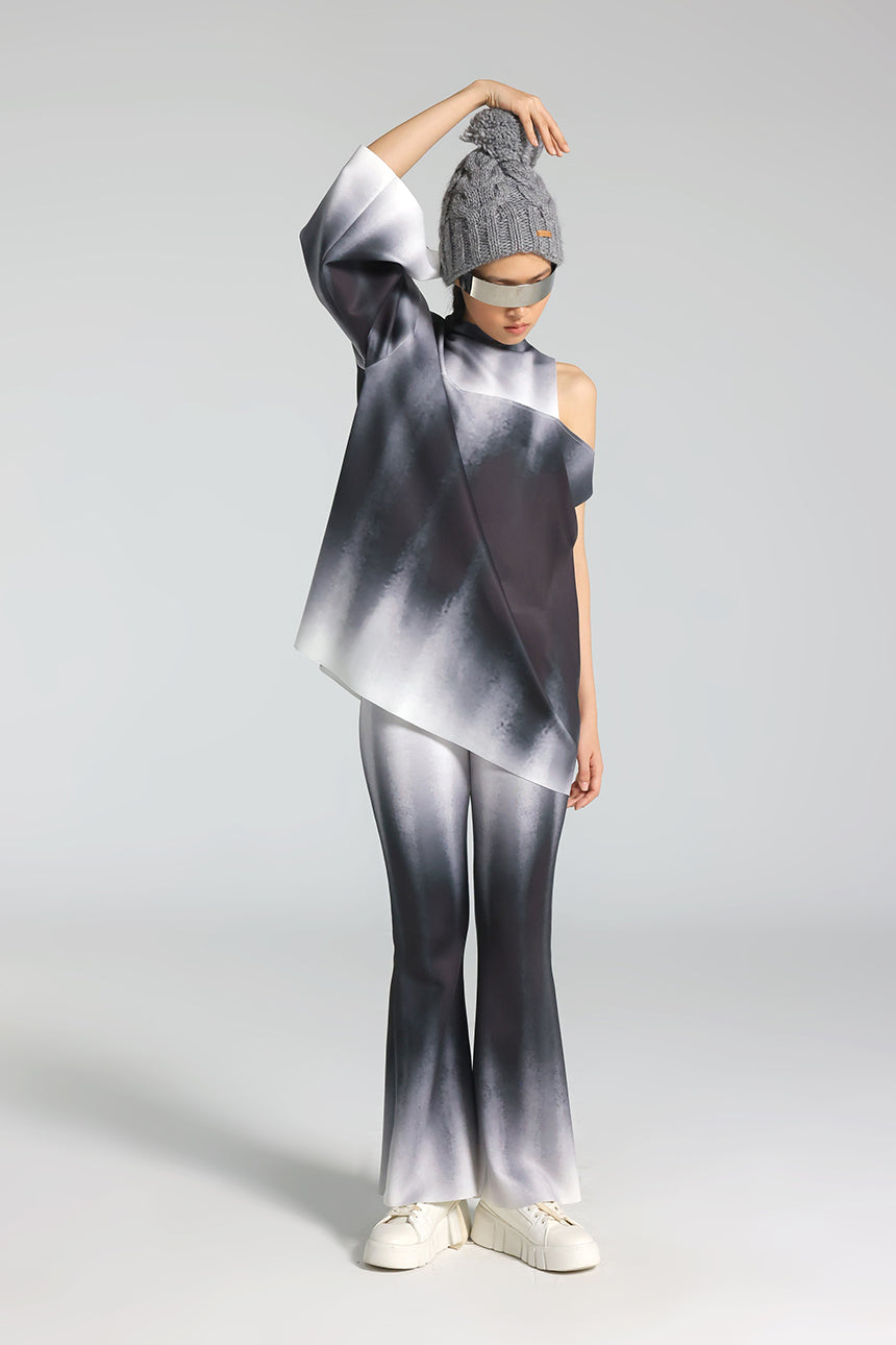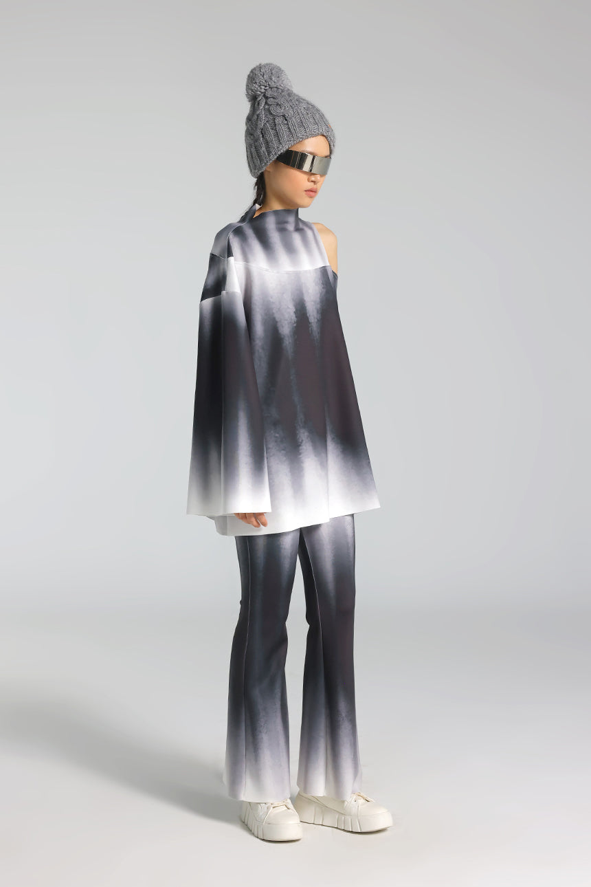 Elastik kemeri ve genişleyen paça yapısıyla konforlu bir form sunan bu pantolon, baskılı tasarımıyla modern ve enerjik bir görünüm yaratır.